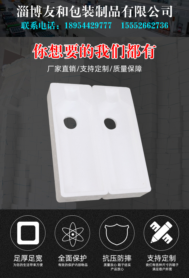 ????淄博友和包裝制品有限公司是專業(yè)的山東泡沫包裝箱加工廠家,本廠主要產(chǎn)品有:泡沫包裝箱,泡沫保鮮箱,水果蔬菜泡沫包裝箱,水果蔬菜泡沫保鮮箱,瓷磚泡沫包裝箱等,產(chǎn)品暢銷全國,深受用戶好評。泡沫包裝定做可以聯(lián)系我們網(wǎng)站 http://www.ny4455.cn/ 上電話,我們會第一時間跟您聯(lián)系。