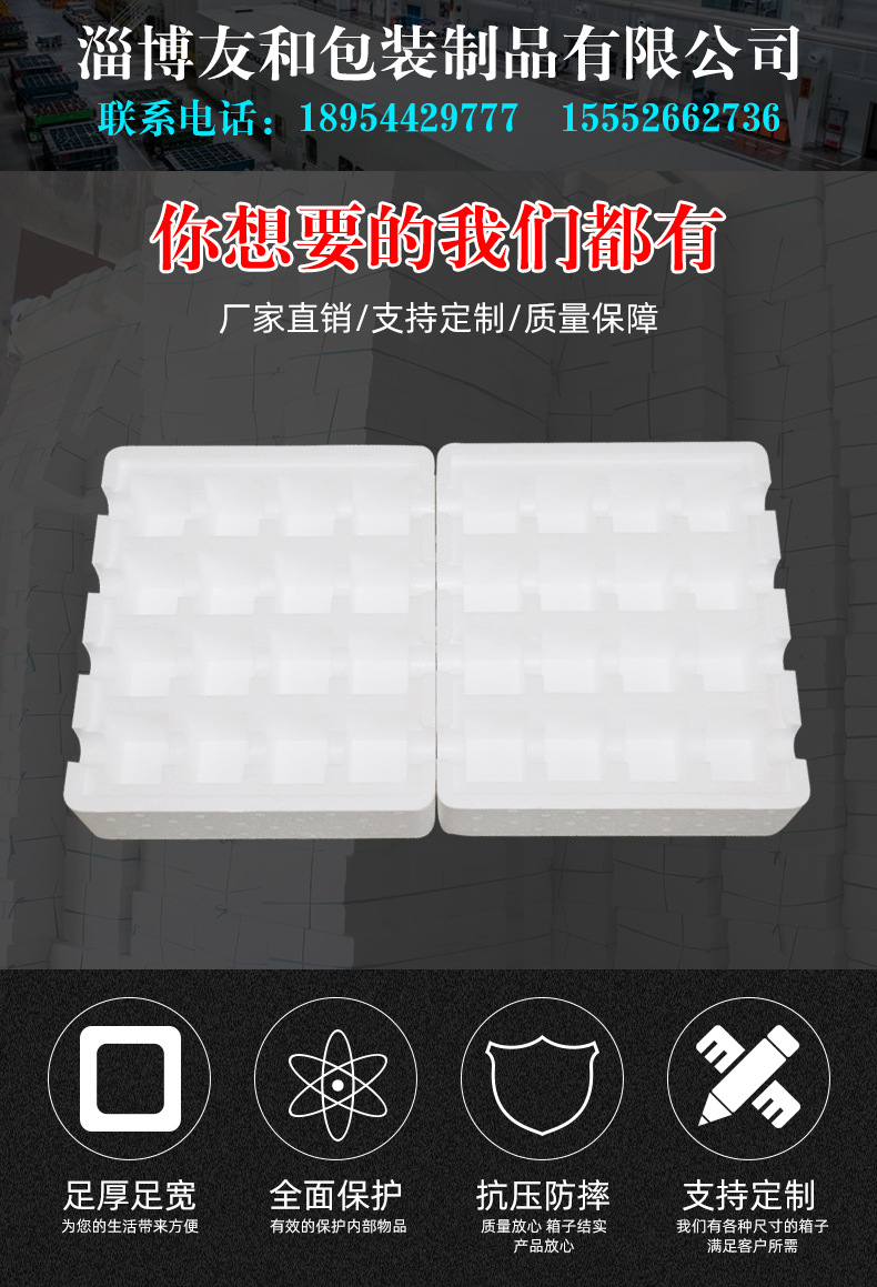 介紹參數圖冊 ????淄博友和包裝制品有限公司是專業的山東泡沫包裝箱加工廠家,本廠主要產品有:泡沫包裝箱,泡沫保鮮箱,水果蔬菜泡沫包裝箱,水果蔬菜泡沫保鮮箱,瓷磚泡沫包裝箱等,產品暢銷全國,深受用戶好評。泡沫包裝定做可以聯系我們網站 http://www.ny4455.cn/ 上電話,我們會第一時間跟您聯系。 上一篇10升玻璃容器包裝箱 下一篇9孔雞蛋禮盒包裝盒